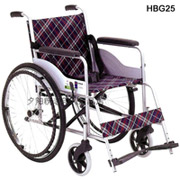 HBG25 简易轮椅属钢管喷塑系列,软座垫,小轮轴采用双轴承结构、带减震橡胶。扶手,搁脚已固定。虽然简易,结构上是属于双支撑架的,属轮椅的最原始模型,简洁,但也是最经济,最实惠。